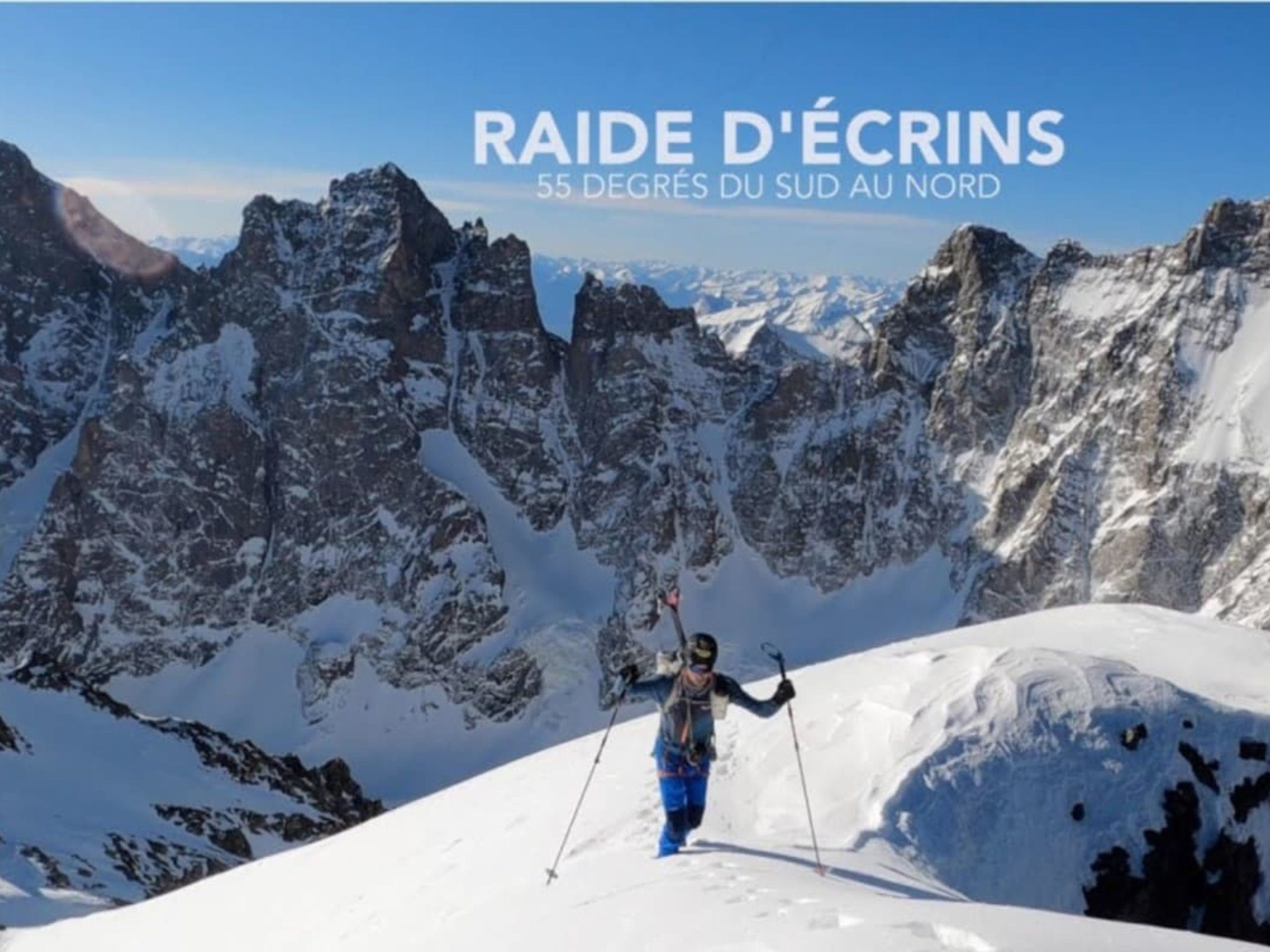 « Raide d’Écrins, 55° du Sud au Nord » est l’histoire de Benjamin Védrines et Nicolas Jean, deux copains partis emprunter les plus beaux couloirs et pentes raides du massif des Écrins en ski de rando.